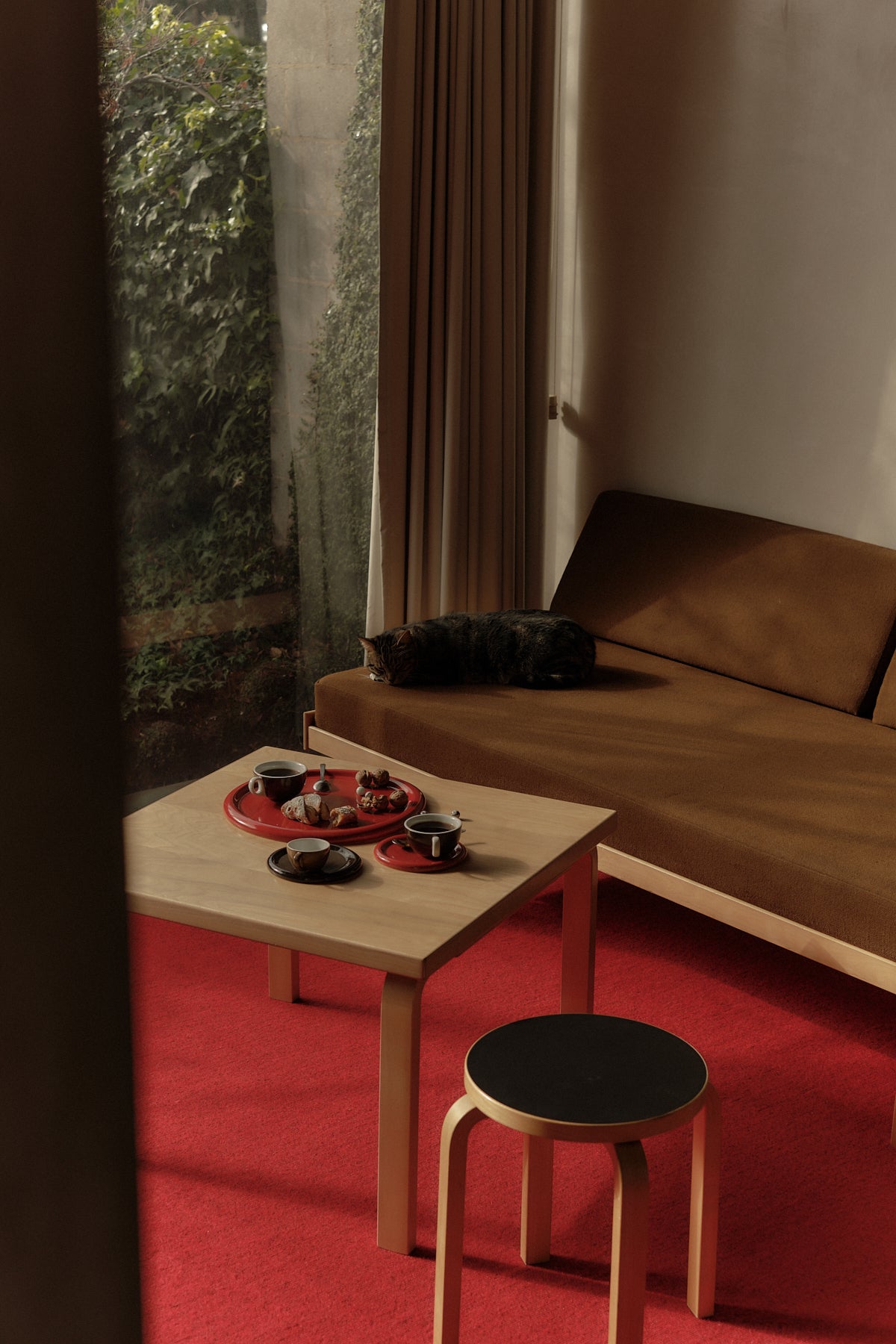 [above] Stacked Rolled Rim plates and platter in Tomato, captured by Layla Cluer, Naarm / Melbourne, Australia, July 2024.